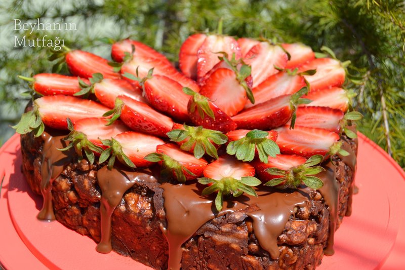 eritip pastanın üzerine yanlarında akacak şekilde gezdirin. Çilek ile süsleyip dilimleyerek servis yapın…Beyhan ’ın Mutfağı‘na Teşekkürler