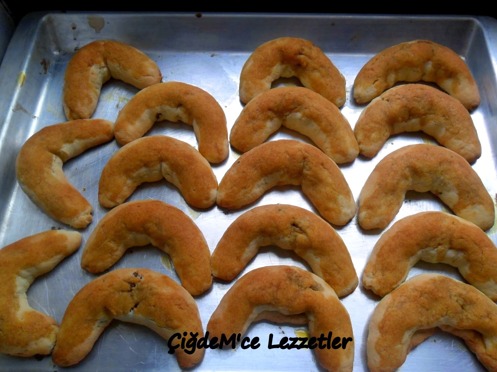 Hamurdan cevizden biraz büyük bezeler yapalım. Tahta üzerinde daire şeklinde hamuru elimizle açalım ve bolca içini koyalım ve rulo şeklinde yuvarlayalım. Tepsimize alırken hilal şeklinde bükelim. Tabi istenilen şekil de verilebilir tercih sizin 🙂 Bütün kurabiyeleri bu şekilde hazırlayalım ve 180 derece fırında pişmeye bırakalım. Fırından çıkınca sıcakken üzerine pekmez dökelim. Bir kurabiyeye yaklaşık 1 yemek kaşığı oluyor.