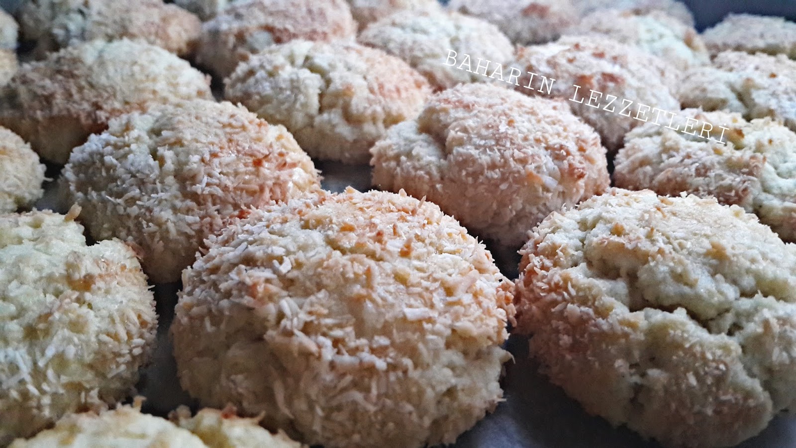 Bir kabın içine yumurta sarisi, margarin, siviyag, şeker, hindistan cevizi, vanilya şekeri, kabartma tozu koyalım ve elle karıştıralım. Un ilave ederek yumuşak bir hamur yoğuralim. 10 dakika dinlendirelim. Cevizden kücük bezeler yuvarlayalim ve avucumuzun iciyle bastirarak yassı şekil verelim. İlk önce yumurta akina daha sonra hindistan cevizine bulayalım. Tepsiye yerlestirelim ve önceden ısıtılmış 170ºC firinda üzeri hafif pembelesinceye kadar pisirelim. Fırından çıkaralım ve soğumaya bırakalım…Baharin Lezzetleri‘ne Teşekkürler