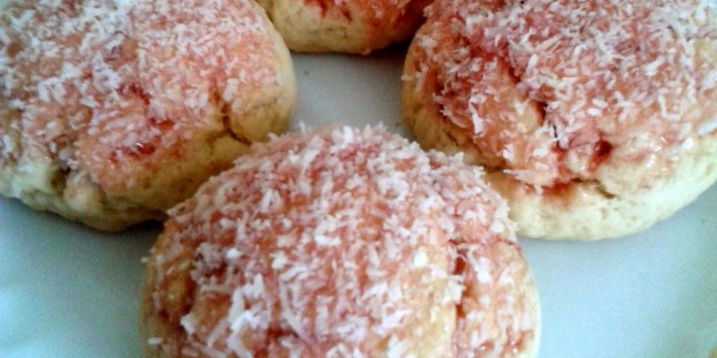 - Pişen kurabiyelerimiz biraz ılısın sonra kurabiyeyi önce reçele sonra hindistan cevizine batıralım.