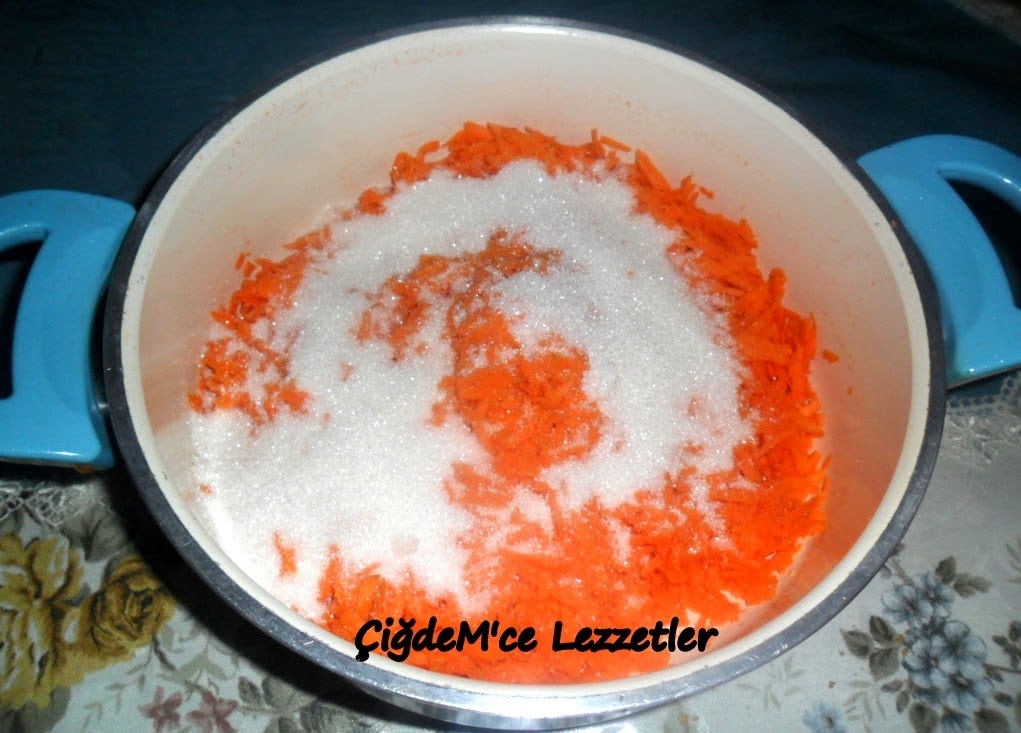 Havucu rendeleyelim şekerle birlikte ocakta suyunu bırakıp çekene kadar pişirelim.