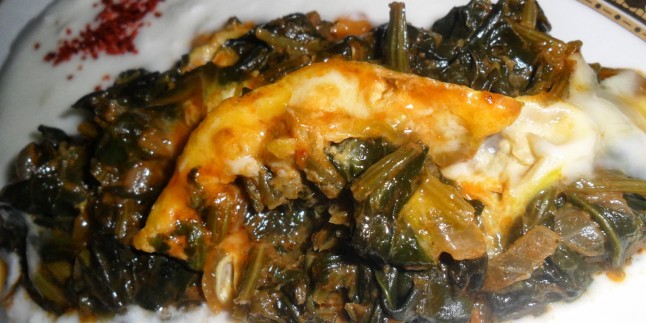 Öncelikle ıspanakların yeşil yapraklarını daha sonra börekte kekte kullanmak üzere ayıralım. Bu yemeğin amacı da ıspanak saplarını değerlendirmek bir yerde. Temizleyip yıkadığımız ıspanaklarımızı küçük küçük doğrayalım. Bu arada derin bir tencerede yağımızı eritelim ve yemeklik doğradığımız soğanı ve salçayı güzelce kavuralım. Üzerine ıspanakları ekleyelim ve yemeğin altını kısalım. Tuzunu ekleyelim.Hiç su eklemeyeceğiz. Bu şekilde ıspanakları ara sıra karıştırarak güzelce kavuralım. Biraz su bırakacaktır suyu hiç kalmayacak şekilde kavuralım. En son işlem olarak yumurtasını ekleyelim.